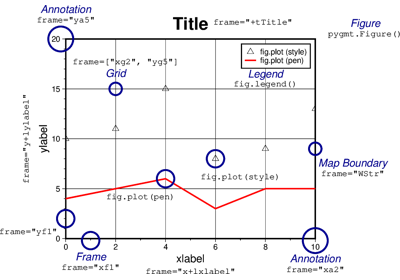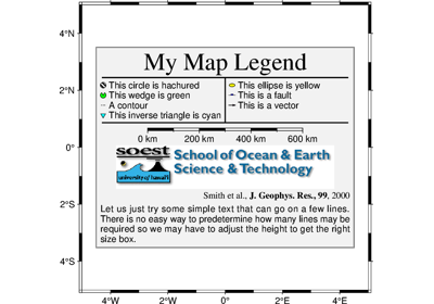 Creates a basic or fancy basemap with axes, fill, and titles. Several map projections are available, and the user may specify separate tick-mark intervals for boundary annotation, ticking, and [optionally] gridlines. A simple map scale or directional rose may also be plotted.