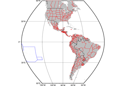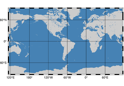 Plots grayshaded, colored, or textured land masses [or water masses] on maps and [optionally] draws coastlines, rivers, and political boundaries. The data files come in 5 different resolutions: (f)ull, (h)igh, (i)ntermediate, (l)ow, and (c)rude. The full resolution files amount to more than 55 Mb of data and provide great detail; for maps of larger geographical extent it is more economical to use one of the other resolutions. If the user selects to paint the land areas and does not specify fill of water areas then the latter will be transparent (i.e., earlier graphics drawn in those areas will not be overwritten). Likewise, if the water areas are painted and no land fill is set then the land areas will be transparent.