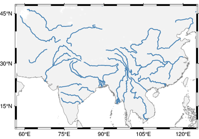 rivers=1: Draw permanent major rivers with default pen.rivers="1/0.5p,blue": Draw permanent major rivers with a 0.5-point blue pen.rivers=["1/0.5p,blue", "5/0.3p,cyan,dashed"]: Draw permanent major rivers with a 0.5-point blue pen and intermittent major rivers with a 0.3-point dashed cyan pen.